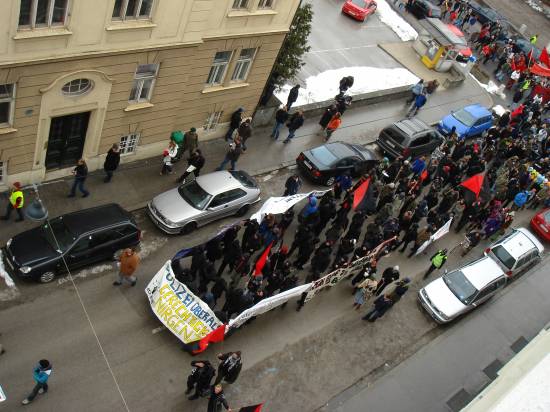 am tag der party war auch eine demo gegen das eu aussenministertreffen in salzburg (foto von wohnungsfenster aus)