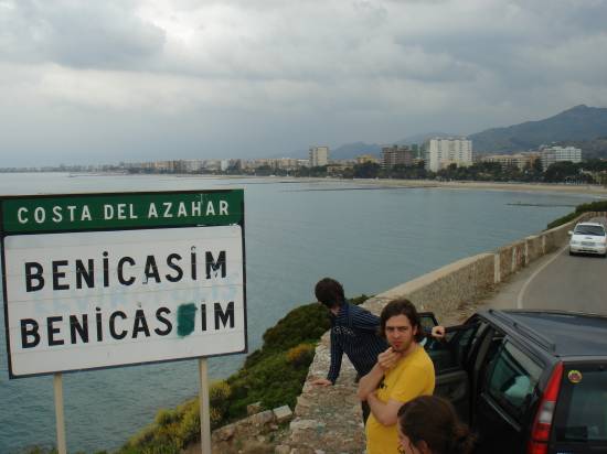 mission erfüllt: lokalaugenschein in benicassim in auftrag unseres benicassim festival tour projekts. bemerkenswert auch dei zweisprachige ortstafel (katalanisch/spanisch) mit verschandeltem spanischen namen!