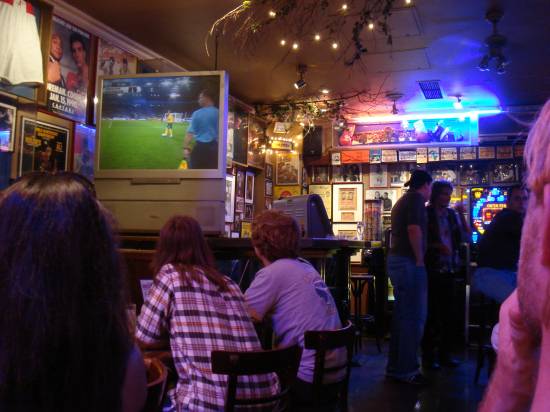fifa fest fest münchen - man beachte das fussballfeld am hügel im hintergrund!italien - tschechien. es waren natürlich fans von beiden vor ortim hintergrund das olympiastadionnicht das einzige haus mit einer deutschland flagge in fenster. patriotismusbekundungen fast wie in amerika!diese fähnchen waren zeitweise ausverkauft und wurden während der wm immer teurer udn teurerinnovativ: wechselgeld fix eingeschweisstam abend schauten wir uns noch das gruppenfinale mit kroation - australien und japan - brasilien anauch auf der flughafenanzeigetafel kam man an den fussballergebnissen nicht vorbei!flugahfen berlin schönefeld. sieht alt aus und wird auch bald abgerissen für den neune flughafen BBI - berlin brandenburg internationalmein lieblingsfernsehturm im magenta-fussball-designplakat an unserer ubhan stationtürkischer markt in kreuzbergkreuzberger preise: kaum zu glauben,  ganze pissa ab 3 eurounser kleiner berlin rundgang führte am checkpoint charlie vorbeiam potsdamer platz. das gebaüde in der mitte existiert noch gar nicht, es ist nur eine plakatwand!potsdamer platz, links deutsche bahn headquarterolympiastadion berlin. viele leute aber überhaupt kein gedränge oder anstellen. rechts der mülleimer im wm designdas stadion füllt sich langsamaussenansichtwenner so weiter macht verschläft er das spielunsere reisegruppe mit lok jochberg t-shirtses spielen: tunesiengegen ukrainegegnerische fans nebeneinanderdie nationalhymnen erklingenund dann gehts loshab versucht ein paar spielszenen einzufangen. ging ganz gut von der vierten reihe ausein schönes stadion übrigensobligatorisches beweisfotospielszene. es ging übrigens 1:0 für ukraine aus durch einen elfmeterdie ukrainerInnen konnten den einzug ins achtelfinale feiernlangsam wirds leer. gut zu sehen hier die blaue laufbahn, die natürlich nicht optimal für ein fussballstadion istnach dem spiel spieltlen wir selber noch ne runde mit ein paar italienernim brandneuen berliner hauptbahnhof. im hintergrund das bundeskanzleramt und auch das sony center am potsdamer platz kann man sehenes ist wirklich ein beeindruckender kreuzungsbahnhof mit vielen etagenspreeufer mit fernsehturm im hintergrundso dieht der bahnhof von aussen aus. rechts gehts richtung alexamderplatz, links zum tiergarten und bahnhof zoosonne geht bald unterpolizei kam auch beritten daherdie allerletzten gruppenspiele schauten wir uns in einer bar an der spree anso sah das von aussen austypisch berlin: mitten auf einem freien platz wurde sand aufgeschüttet und ein bar aufgebaut. leider wars um schon ziemlich verlassen dortlinks adidas mini olympiastadion, rechts bundeskanzelramt. hinter mir wäre der bundestagbrandenburger tordieser fussball tourte durch deutschland vor der wm. drinnen eine art fussball austellungdas ist das relativ neue stehlenfeld, das ziemlich umstrittene holocaust denkmalmittendrin im stehlenfeld. darunter befindet sich eine austellung zum holocaustpotsdamer platz im wandel der zeitwieder mal ein schwarz-rot-gold dekoriertes autohier spielen grad die sportfreunde stiller im zdf studio in sony center am potsdamer platzauf der fanmeile. hinter die siegessäulefahnen am screen und vor unsdas fahnen meer verrät: deutschland spielt. gegen schweden im achtelfinale. und gewinntschloss bellevue mit dem schönsten und dichtesten rasen den ich je gesehen hab. man traute sich fast nicht sich draufzusitzendas zweite achtelfinale schauten wir dann im gastgarten vorm tränenpalast (u/sbahn friedrichstrasse, also auf der ex ost-west grenze)zum wm wurda mal schnell ein deutschland cocktail kreiertscreen vorm tränenpalastwar gar nicht schlecht das teilaus der serie wm überall: brottütedas war unsere unterkunft: riverside lodge in berlin kreuzberg. empfehlenswert!fussballfeld am flughafen berlin schönefeldjetzt gehts wieder heimund einmal gehts noch mit fussball schauen: in roberts haus in münchen mit notebook und dvb-t