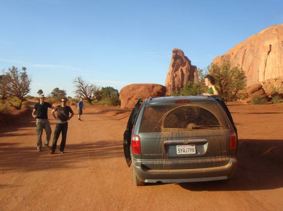 auf der schotterstrasse durchs monument valley. etwas staubig