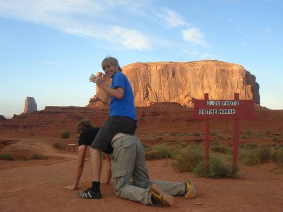 images > 2007 > westcoasttriphier entsteht eine reiseblog über unsere reise durch den westen der usa. die ungefähre route wird sein: las vegas - bryce canyon - monument valley - grand canyon - death valley - los angeles - san francisco - portland - vancouver - seattle. noch genauer könnt ihr es auf der planungsseite im wiki nachlesen.los gehts am 5.9. und ich werde versuche alle paar tage einige fotos und einen reisebericht online zu stellen. freu mich wenn ihr lust habt die reise zu verfolgen und ein paar kommentare hinterlasst! horse tour $2 auf einem amerikanischen haflinger ![]() ![]() ![]() ![]() ![]() ![]() ![]() 6.9.2007, 1h, stratosphere hotel las vegas (yohap) 6.9.2007, 1h, stratosphere hotel las vegas (raimund) 6.9.2007, 13h, stratosphere hotel las vegas (yohap) 6.9.2007, 16h, stratosphere hotel outdoor pool (yohap) 6.9.2007, 12h, stratosphere hotel (raimund) 7.9.2007, 10h, stratosphere hotel (raimund) 7.9.2007, 23h, stratosphere hotel (yohap) 13.9.2007, auf der autofahrt nach los angeles (raimund) am nächsten tag ging es nach monument valley. da sind so rote felsen wie in „mischen“ impossible 2. ich war einwenig frustriert, schon wieder steine, nur halt diesmal in rot;) aber mein tag war gerettet, als ich im park offroad fahren konnte. manfred stohl hätte vor neid erblassen können:) der schaffi ist einwenig rum geklettert, ich glaube er hat zu oft spiderman geschaut. am abend haben tom, hannes, schaffi und ich einwenig schnellen gespielt. ich sage nur, schaffi und hannes: üben,üben und nochmals üben:) einen kleinen zwischenfall gab es jedoch. der tom ist plötzlich wie ein kleines mädchen aufgesprungen (tom legt ein veto ein) wie ein held aufgesprungen. aufgrund seines heldenmutes konnte er uns vor einer soldier termite (sc einer soldatentermite) retten. wir werden dir ewig dankbar sein. eine kleine randbemerkung, tom meint, dass das „die miete“ und nicht „dermiete“ heißen muss;) hannes setzen 5. von monument valley nach bryce national park sind wir ca 50 meilen über eine offroad strecke gefahren und wer ist gefahren –hehe. mitten auf der strecke hat es zu regnen begonnen und was es jeden tag in der wüste gibt, zu hageln. ja, hagel in der wüste, wir konten es auch nicht glauben. gott sei dank ist das nicht mein auto. was glaubt ihr hat es im park gegeben????? ja richtig, steine. wir haben einen gruppencampingplatz für 30 leute bekommen. wir haben unseren eigenen wald mit bären bekommen. ich habe mich gleich zum bear-wrestling bei der parkleitung angemeldet, es konnte jedoch keiner ausfindig gemacht werden, da die kunde meiner ankunft sich herum gesprochen hat. am abend machten wir einen kleine runde am rand des canyon. abendgestaltung gab es natürlich auch wieder, wodka schnee-olé und nicht zu vergessen die medizin aus der heimat vogelbeerschnaps. vor einen totalen absturz konnte uns nur retten, dass unsere vorräte ausgegangen sind. in der nacht war es einwenig kalt, so 2 grad, halt richtig fein um sich in den schlafsack kuscheln zu können. wir haben heute einen einrichtung zur geschwindigkeitsmessung auf der straße entdeckt und was haben wir gemacht, nicht was ihr denkt, mit dem auto vollgas geben, wir sind gesprintet. es wurde von jedem außer h. (der name ist der redaktion bekannt) eine geschwindigkeit von 17 mph erreicht. zu seiner ehrenverteidigung ist anzumerken, er hatte bergschuhe an. 17.9.2007, auf der autofahrt von los angels nach monterey (raimund) am späteren abend (oder morgen?) sind wir noch auf einen drink ins green’s gegangen. dort versüßten uns 3 ami mädls, die beim geburtstag feieren waren, den abend nicht unwesentlich, ich kann nur sagen, black is beautiful, oder dan? nach einer langen autofahrt sind wir dann endlich in la, genauer gesagt in hermosa beach angekommen. wir haben uns im „surfer´s in“ einquartiert, ein richtig feines hostel. gerade angekommen, mußten wir uns um ein paar drinks kümmern, da hannes geburtstag hatte. im aufenthaltsraum haben wir mit den anderen hostelbewohnern eine adäquate geburtstagsparty gefeiert. ich hab mich mit dem neuseeländer rugbyspieler sam angefreundet und von ihm den kampfschrei der all blacks (das ist die neuseeländische rugbymannschaft) gelernt (es gibt ein ziemlich witziges video davon). natürlich konnte ich es mir nicht nehmen lassen, am gang eine kleine runde rugby zu spielen. ich kann nur sagen, mir tun die knochen jetzt noch weh, der kerl hat mich einwenig ausgeknockt:) hannes, der von uns natürlich kein geschenk bekommen hat, beschenkte sich selber - dem schilehrer charme sei dank. in meinem übermut habe ich noch der spanierin lola einen heiratsantrag gemacht, zum glück war ich nicht in las vegas, dass hätte böse enden können;) ich kann nur sagen, dass war wirklich eine feine party und hannes nochmals alles gute!! nach einer ausgiebigeren nachtruhe ging es an den pazifik. dort haben wir gleich ein paar amis im volleyball paniert - hehe – tirol rules. ein kleiner wehrmutstropfen war jedoch zu verzeichnen, hanson konnte nicht ins wasser gehen, da es ihm zu kalt war, einfach ein zivildiener (hups ich war ja selbst einer); er erkundigte sich bei uns ausführlich über die vorteile eines neoprenanzuges. ein wirklich schrägen typen haben wir im hostel kennegelernt. tony ist ein mischung aus den dude (big lebowski) und jack black, einfach genial. ein satz beinhaltet zwischen 12 bis 15 mal fuck und er redet den ganzen tag über classic rock und football. am samstag war unsere große la runde am programm. über die küstenstraße, vorbei an venice beach, ging es über den sunset strip nach hollywood. meiner meinung nach ist hollywood ziemlich langweilig, eigentlich fast schon einwenig gammelig, aber kein la besuch ohne hollywood zu sehen. zu mittag besuchten wir die ucla universiät in beverly hills und nahmen dort auch in der mensa unser essen ein. am nachmittag ging es nach downtown. wenn wir bei dem einen oder anderen fleißigen blogleser den eindruck erweckt
