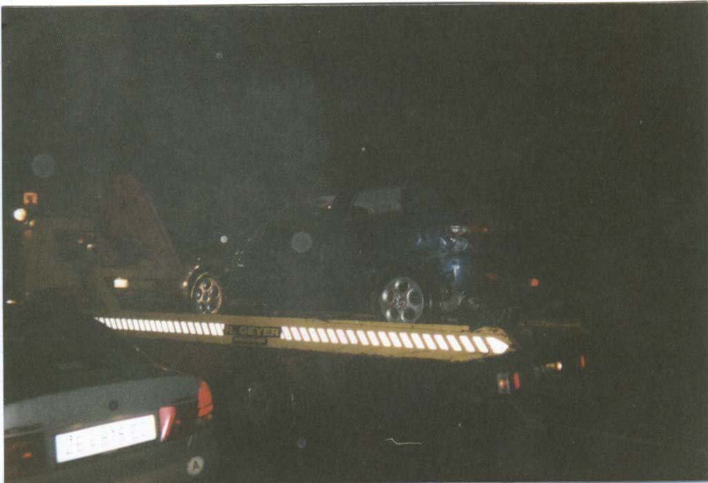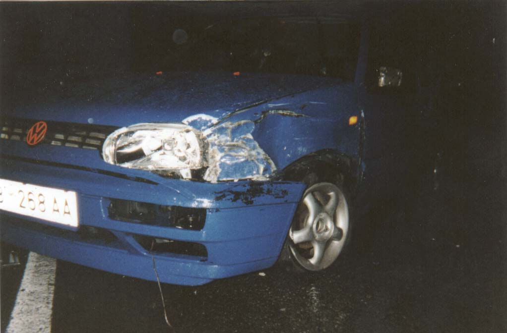 images > 2001 > autounfallich fahr da ganz gemütlich von jochberg nach salzburg zu einer party (es war joneses geburtstagsparty) und was passiert? schlittert mir so ein alfafahrer rein in meine schön neu lackierten golf und macht ihn schrottreif (der gutachter meinte allerdings das war er sowieso schon...) -enlarge- -full size- das war mein gegner: ein alfa145. der kam auf der fahrertür zu liegen und war ebenso schrottreif |  -enlarge- -full size- so kam ich zum stehen, quer auf meiner fahrbahn |  -enlarge- -full size- licht, stossstange, reifen. felgen, kotflügel und auch getriebe durch den schlag im eimer, geschätzter schaden war €7500 |  -enlarge- -full size- aja, noch was: die tür ging nur mehr schwer auf und danach nie wieder zu! |  -enlarge- -full size- polizei (deutsche, weil war im deutschen eck) war bald da, hatte aber dann ne panne: batterie leer! |