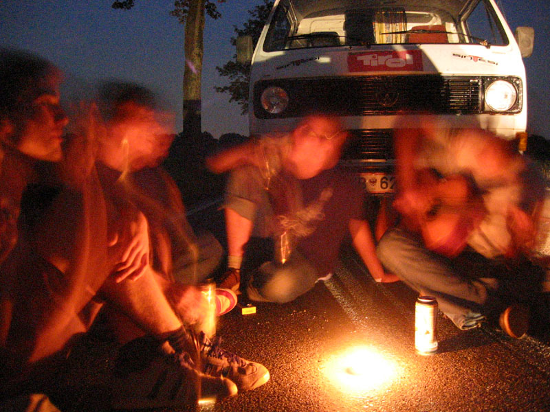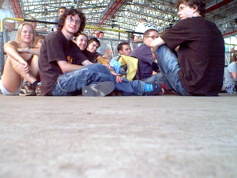 -enlarge- -full size- foto von andi. nicht nur ich stand im stau, meine freunde die von österreich aus hinfuhren standen 7h, ich \'nur\' 5. aber wir machten es uns alle gemütlich. ich hatte spass mit den leuten die vor mir fuhren und sie mit teelicht, bier und gitarre. |  -enlarge- -full size- der stau ging weiter: 100meter vor der bändel-ausgabe |