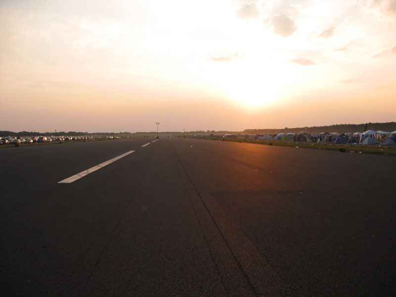-enlarge- -full size- zwischen park- und zeltplatz war das flugfeld des flughafen, der bald wieder in betrieb gehen wird |  -enlarge- -full size- chemical brothers mit geile visuals. absolutes highlight. mega sound für im freien! |