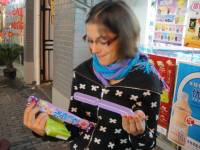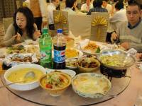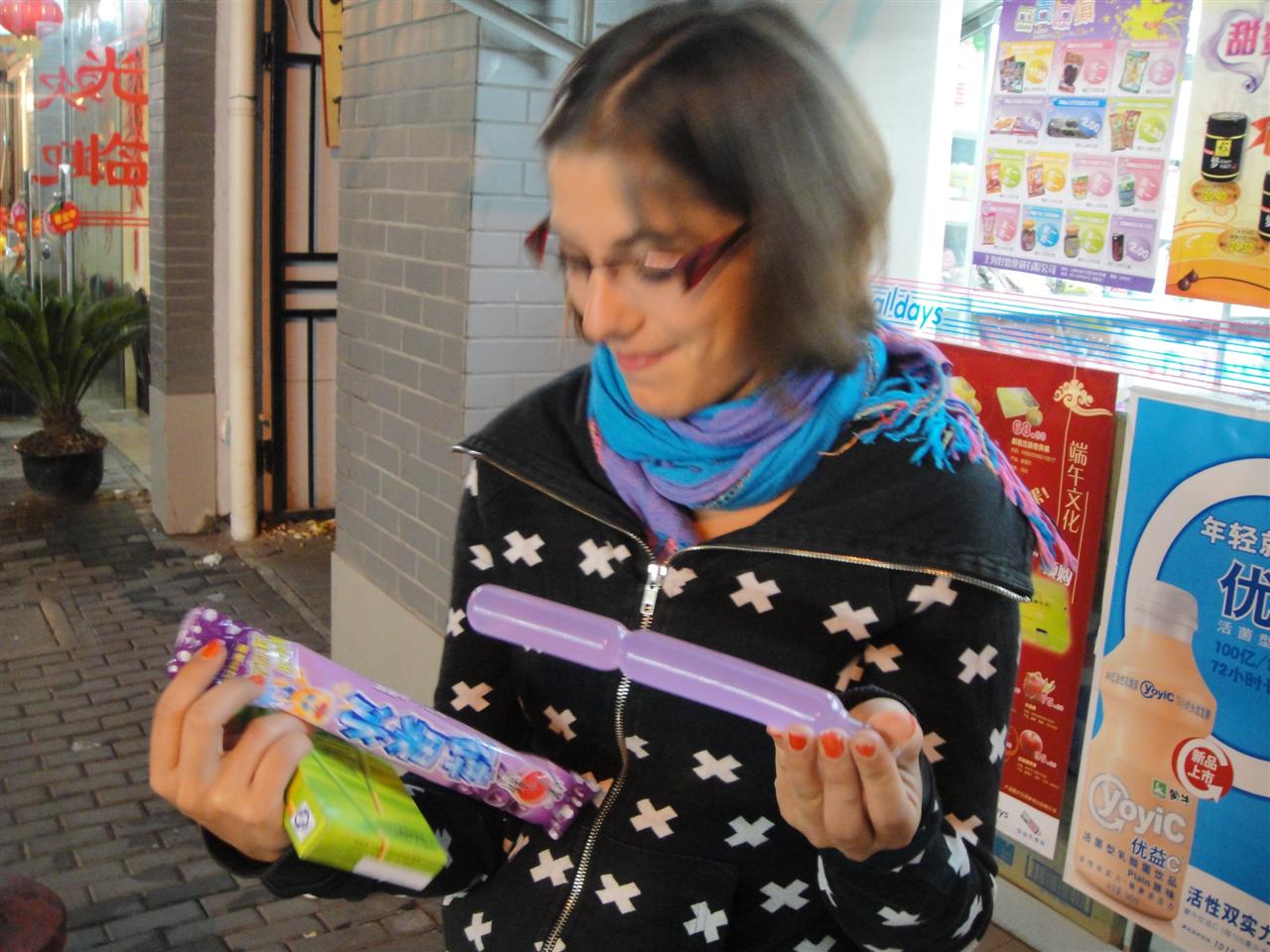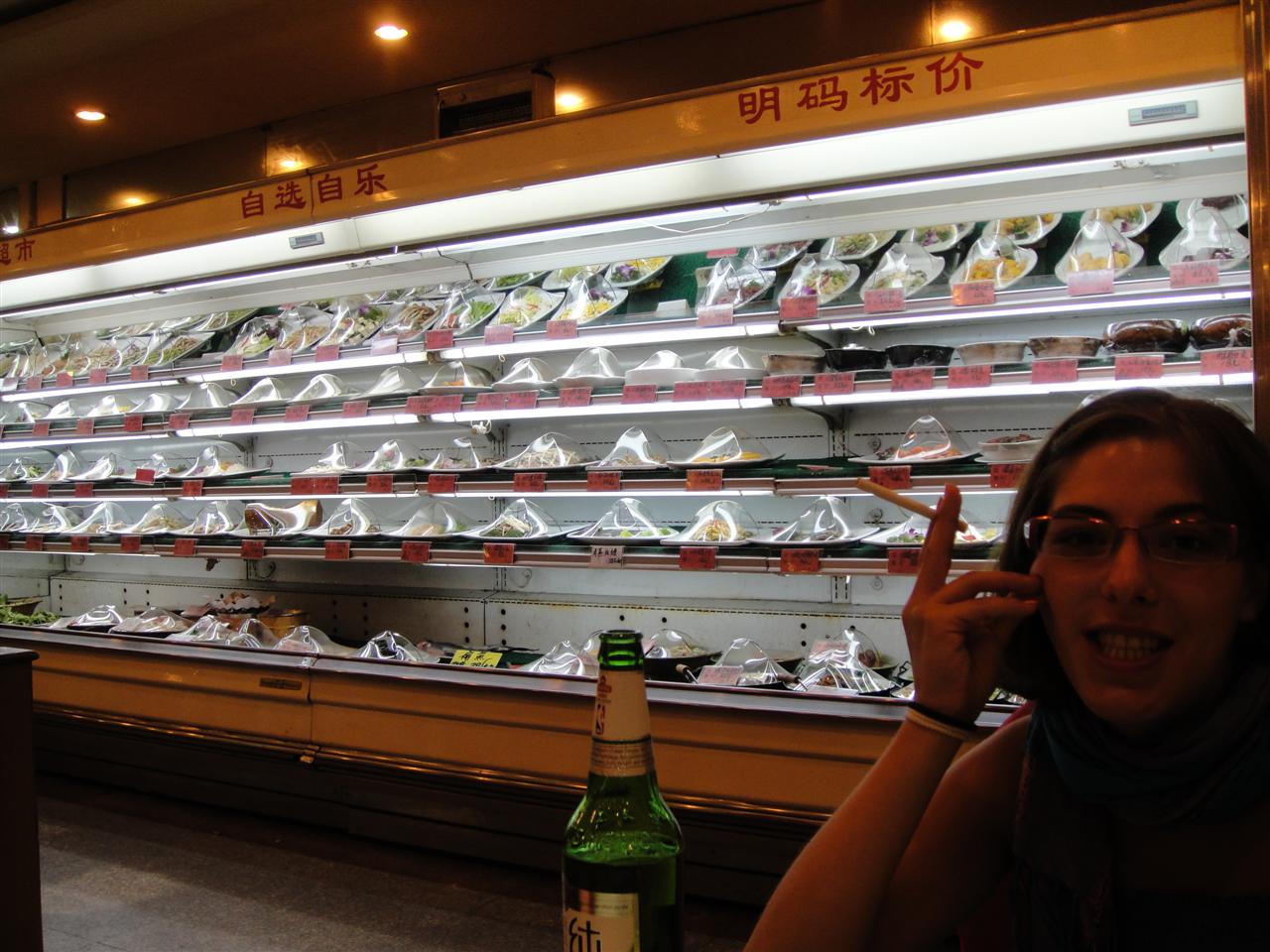 .JPG) -enlarge- -full size- wunderliche süssigkeiten mit optischer verwandtschaft zu verhütungsmitteln | .JPG) -enlarge- -full size- erstes mal chinesisch essen in china. keiner konnte ein wort englisch aber man konnte das essen im kühlschrank begutachten. freude erregten unser ich bin vegetarier schild und johannas stäbchenkünste |