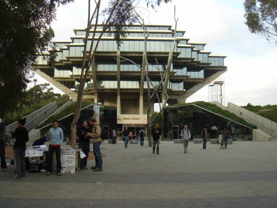 images > 2006 > san_diegotjs, die usa... immer wieder eine reise wert muss ich sagen! im vergleich zum letzten trip war diesmal viel mehr landschaft und natur dabei ohne auf grosse städte zu verzichten. als hochhaus fan (wie ich) kommt man in new york sicher mehr auf seine kosten, aber das death valley und die ganze autofahrt war sehr beeindruckend. in kalifornien ist einfach teilweise dutzende meilen weit einfach nichts. kein ort, keine autobahnausfahrt, kein handyempfang und auch fast keine autos. sowas gibt es denke ich in mitteleuropa einfach nicht, zumindest nicht im flachen land. hier der originaltext von vor der reise: mein professor ist gerade auf der uni san diego und er holt sich natürlich auch qualifiziertes personal nach, z.b. mich und meinen kollegen andi ;) wir werden an der uni arbeiten und auch zeit haben um etwas die gegend zu erkunden, vielleicht sogar las vegas und ziemlich sicher los angeles, weil wir dort landen. der hinflug wird allerdings fast ein horror trip. am 30.11 gehts um 6:20 nach london (2h früher da sein versteht sich von selbst) und dann haben wir dort 4h zeit um vom city airport nach heathrow zu kommen. wie das geht weiss ich noch nicht, aber es ist mitten durch die stadt. um 11h gehts dann weiter und um 14h (ortszeit natürlich) landen wir in los angeles, wo wir dann ein auto ausleihen und die 200km nach san diego fahren müssen (wahrscheinlich zu diesem hotel). klingt nach einem verdammt langem tag! geisel library und linke aktivisten (links) |