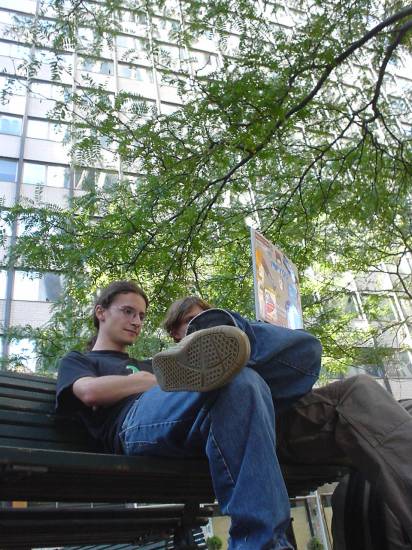 woohoow, new york. in der stadt kann man es aushalten, keine frage. vor allem studieren muss hier FANSTASTISCH sein, wenn schon der campus der columbia university so unglaublich ist, dass man sich das als österreichischer, von gehrers sparwahn unterdrückter student kaum vorstellen kann. naja, dafür kostet der spass dann auch ein wenig mehr... Man ist ja dazu geneigt zu glauben, dass es in new york nichts anderes als mc donalds, burger king und starbucks gibt (hannes und ich sitzen übrigens grad in einem, nämlich ecke 5th ave, 34th street: direkt neben dem empire state building.) Das ist natürlich falsch. in jeder strasse gibt es unzählige cafe´s, restaurants,... man KANN also auch ohne fastfood seinen magen füllen. (gilt nicht für uns, das fangen wir uns garnicht erst an ;-)) generell erleben wir gotham city als relativ stressfrei, die vielen parks und cafe´s sind sehr angenehme rückzugsgebiete. von chinatown, little italy usw. über brooklyn (mein favourite) und harlem haben wir alles schon besichtigt, nur einen borough mussten wir auslassen, und zwar die bronx. vielleicht geht sich das morgen vormittag noch irgendwie aus, aber die zeit verrinnt hier, sowas habe ich überhaupt noch nie erlebt.