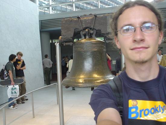 beweisfoto vor liberty bell, rudi und gregor im hintergrund