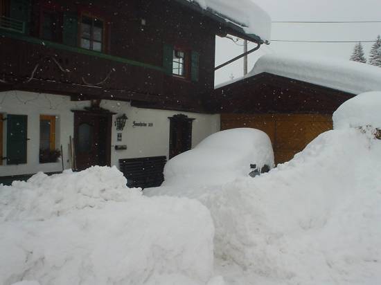 moderate schneedeckeeiszäpfchen an meinem kennzeichenerstes opfer: mein auto mit schnee zugefüllt. es brauchte 30 minuten schneeschaufeln um da wieder raus zu kommen!zugefüllt ist nicht übertrieben!103cm auf guidos nach oben offener schnee skalamehr schnee. man vergleiche das erste foto damit!es gibt noch schlimmere fälle als mein eingeschneites autoein weiteres opfer: crash durch unangepasstes fahrenguido befreit sein dach vom schnee weil er schon schlecht drunter schläft ;)blick auf verschneite jochberg