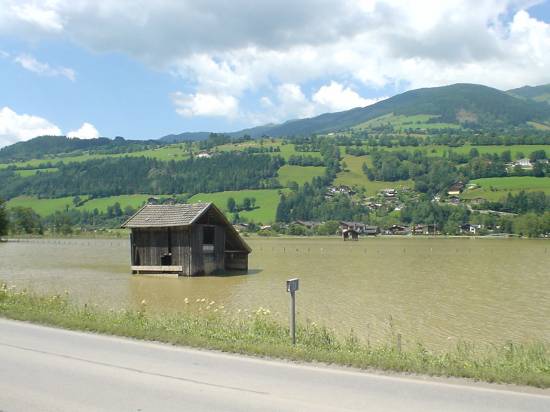 images > 2005 > hochwassermitte juli tritt die salzach vor mittersill über die ufer. ich alt bekennender katastrophentourist ließ es mir natürlich nicht nehmen mir 2 tage später vor ort selbst ein bild zu machen (im wahrsten sinne des wortes wie ihr hier seht!)ein heustadl hält dem wasser stand |