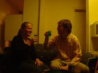 -enlarge--full size- farbenfrohe cocktailparty bei steve in wörgl. bernadette und richi beim anstossen